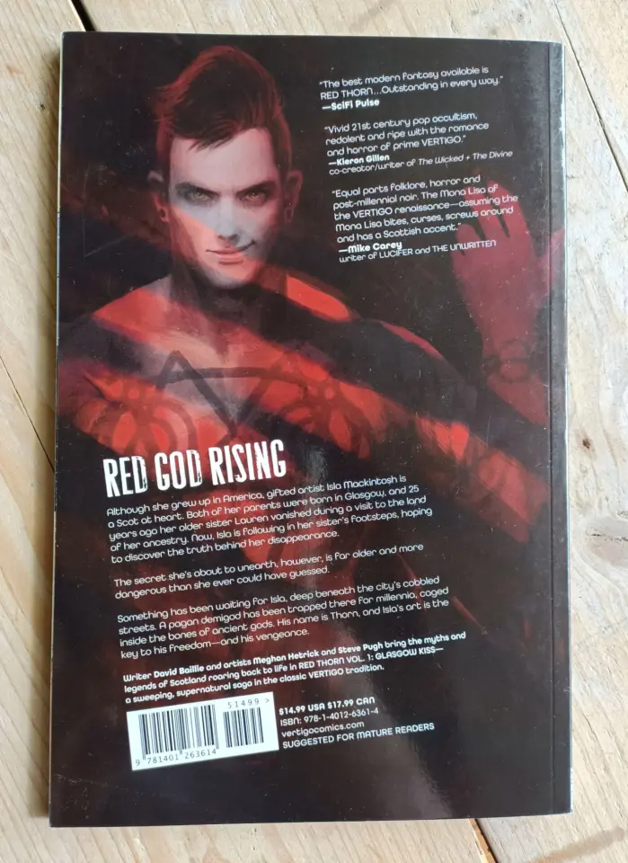 Writer David Baillie and artists Meghan Hetrick and Steve Pugh bring the myths and legends of Scotland roaring back to life in RED THORN VOL. 1: GLASGOW KISS—a sweeping, supernatural saga in the classic VERTIGO tradition!