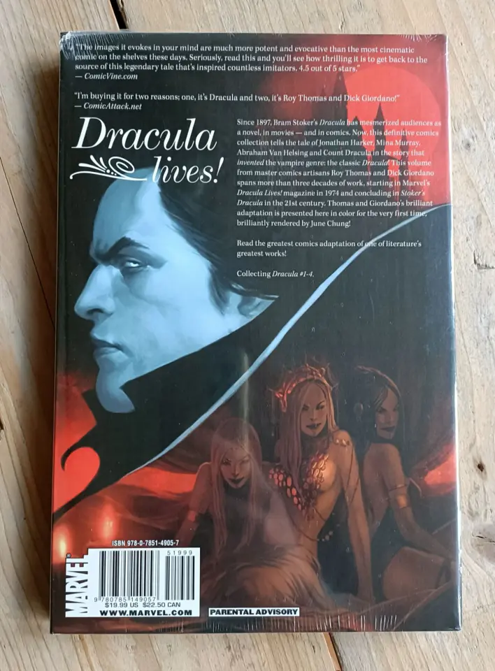Dracula lives! Since 1897, Bram Stoker's DRACULA has mesmerized audiences as a novel, in movies - and in comics. Now, this definitive comics collection tells the tale of Jonathan Harker, Mina Murray, Abraham Van Helsing and Count Dracula in the story that invented the vampire genre: the classic DRACULA! This volume from master comics artisans Roy Thomas and Dick Giordano spans more than three decades of work, starting in Marvel's DRACULA LIVES! magazine in 1974 and concluding in STOKER'S DRACULA in the 21st century.... Thomas and Giordano's brilliant adaptation is presented here in color for the first time, brilliantly rendered by June Chung! Read the greatest comics adaptation of one of literature's greatest works!