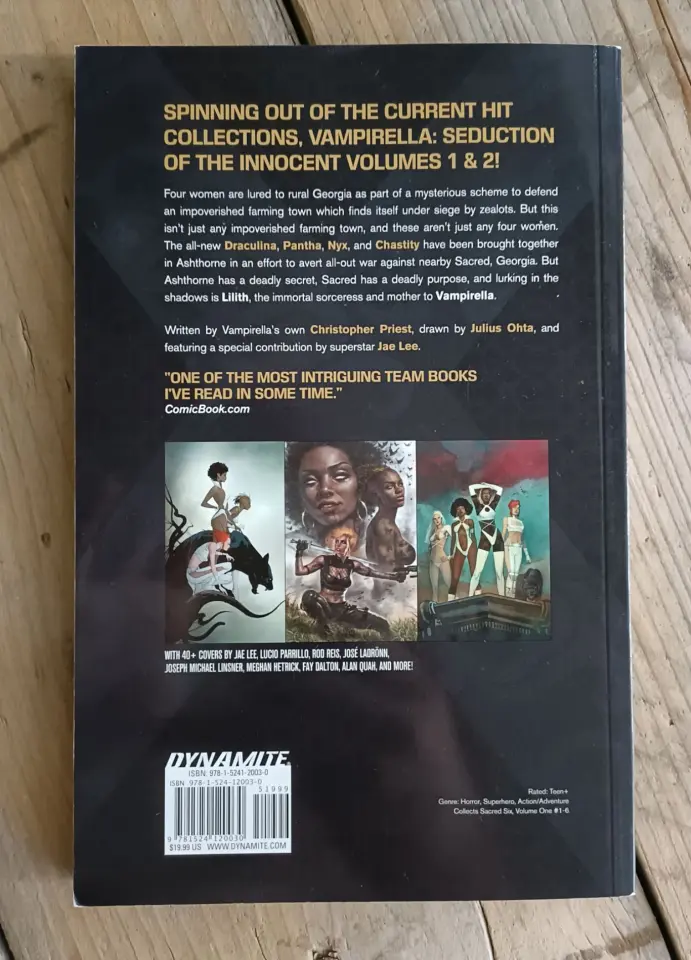 Spinning out of the current hit series, VAMPIRELLA! Four women are lured to rural Georgia as part of a mysterious scheme to defend an impoverished farming town which finds itself under siege by zealots. But this isn't just any impoverished farming town, and these aren't just any four women. The all-new Draculina, Pantha, Nyx, and Chastity have been brought together in Ashthorne in an effort to avert all-out war against nearby Sacred, Georgia. But Ashthorne has a deadly secret, Sacred has a deadly purpose, and lurking in the shadows is Lilith, the immortal sorceress and mother to Vampirella.