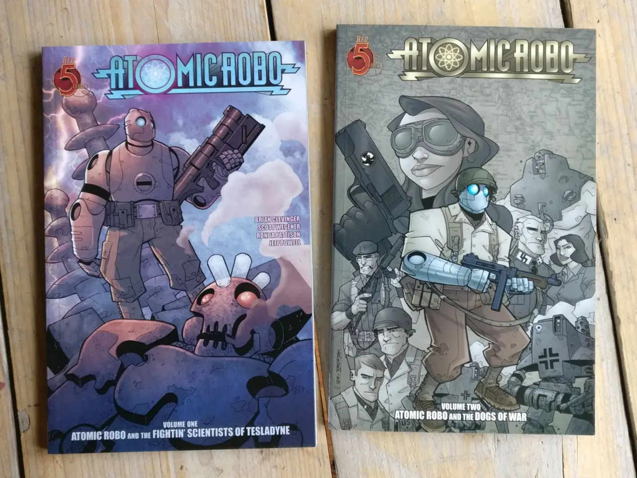 (W) Brian Clevinger (A) Scott Wegener In his double-Eisner-nominated debut series (Best Limited Series, Best Coloring), Atomic Robo takes on Nazis, giant ants, clockwork mummies, walking pyramids, Mars, cyborgs and his nemesis, and Baron von Helsingard.