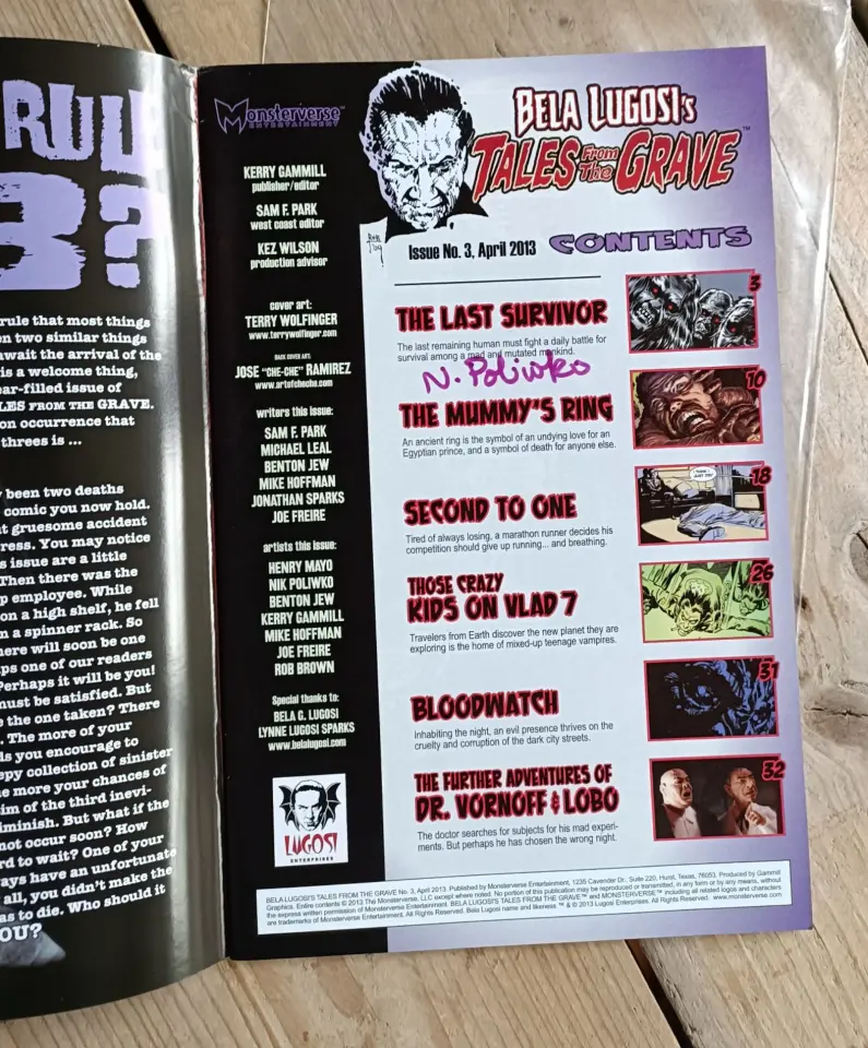 Bela Lugosi Tales From The Grave #3 (signed)