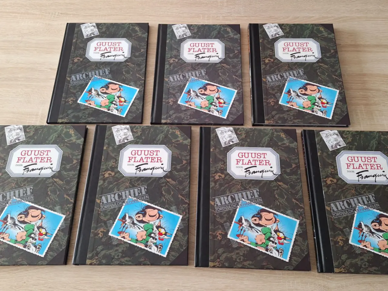 Deze Guust Flater Collectie bevat een set van zeven stripboeken in een cassettebox. In goede staat.