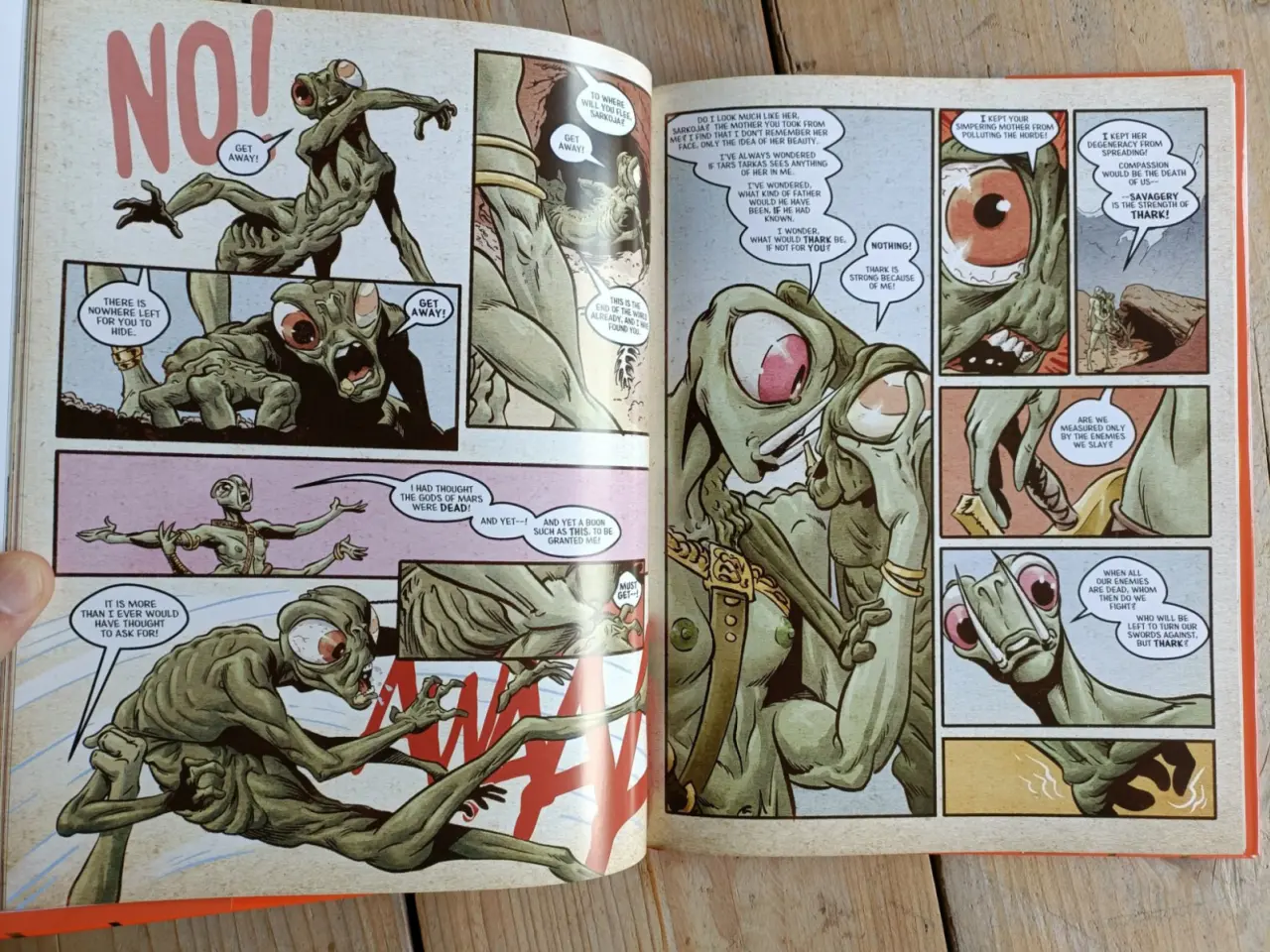 Vol. 1 is 152 page hardcover collection of the first three chapters in this Martian saga. Included are notes, sketches, process pages, and a complete cover gallery, (featuring 17 different covers from 7 different artists.)
