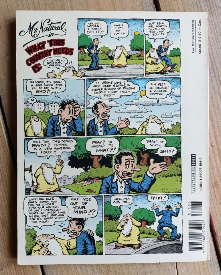 This softcover collection features over 120 pages of vintage Crumb comics starring the white-bearded, diminutive sage-cum-charlatan, ranging from charming, free-wheeling early '70s stories to the disturbing, controversial '90s stories (as seen in the Crumb movie), including the entire 40-page 'Mr. Natural and Devil Girl' epic.