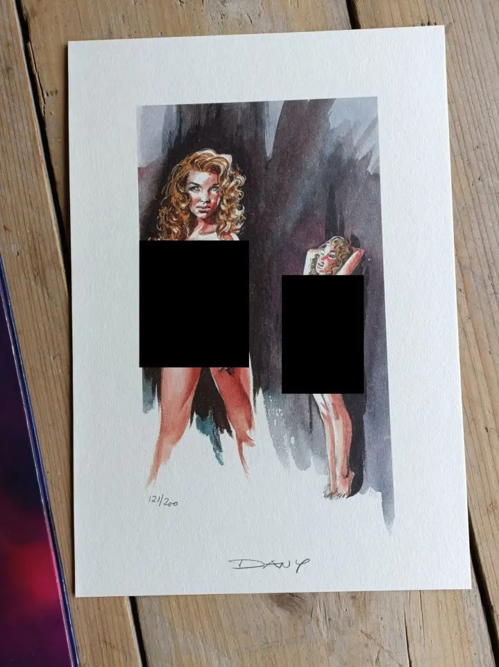 Genummerd (1 - 200) en gesigneerd met genummerde (1/200 - 200/200) en gesigneerde ex-libris en originele zwart-witte filmcel op A4 formaat.
