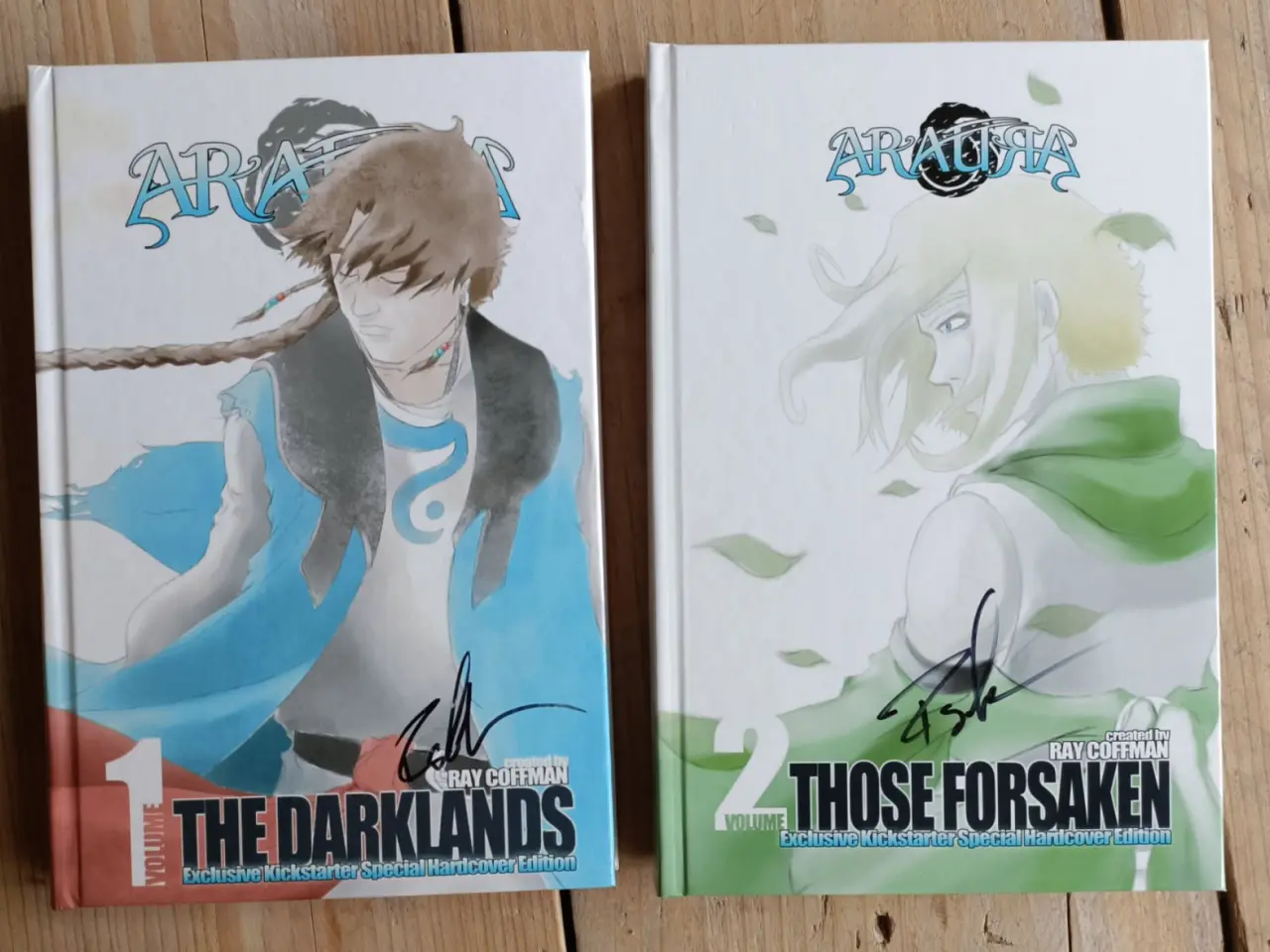 Araura Volume 1: The Darklands and Volume 2: Those Forsaken in their Kickstarter exclusive hardcovers!