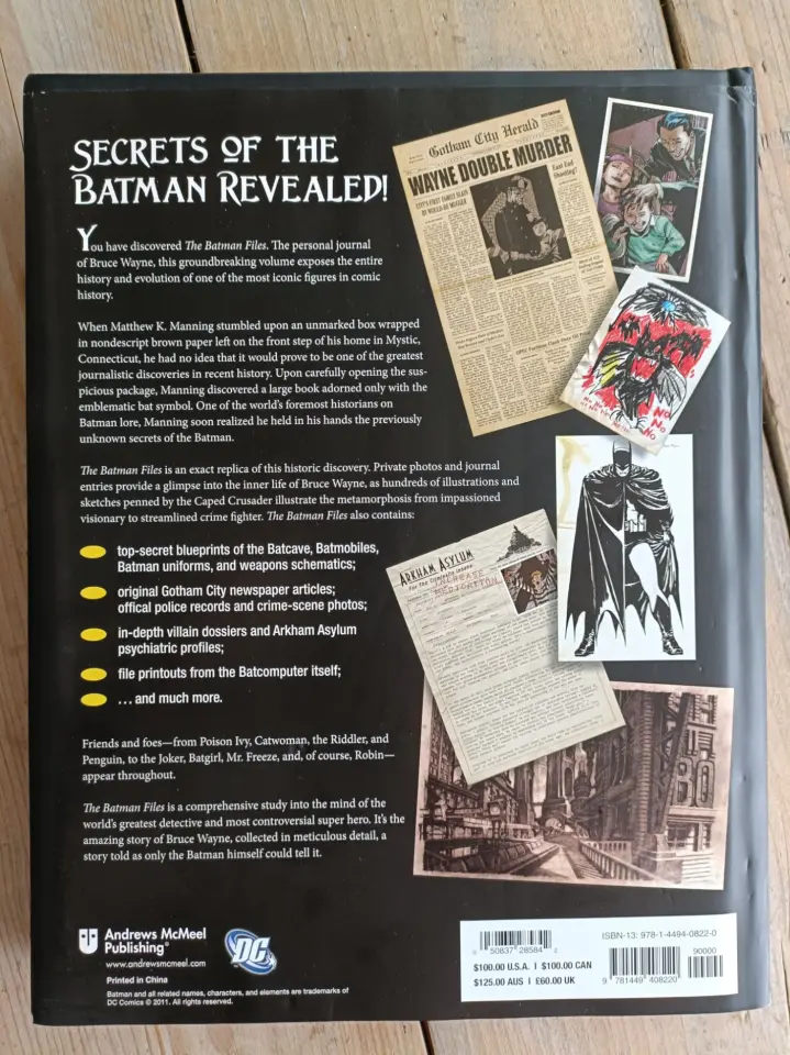 Completely outlining Batman's war on crime, The Batman Files includes in-depth computer files, news articles, crime scene photos, blueprints, schematics, and actual maps of Gotham City that were collected, and in many cases even drawn, by the Caped Crusader himself.