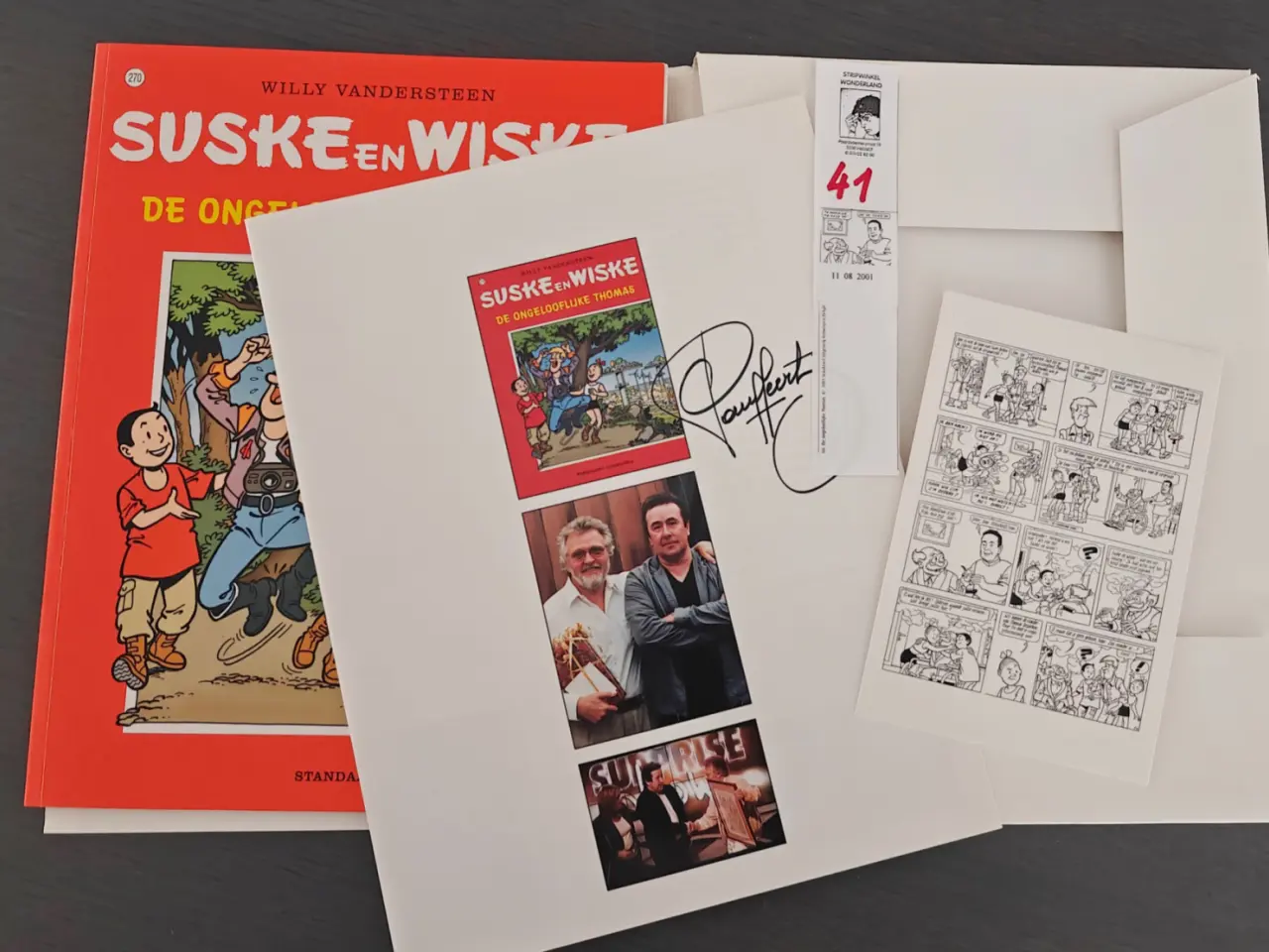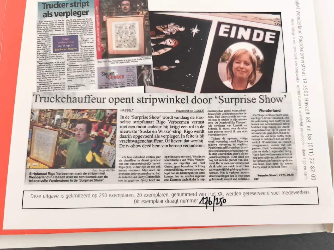Voor stripwinkel wonderland werden 250 ex. gereserveerd in een witte kaft met opgekleefde z/w prent met losse bijlage.