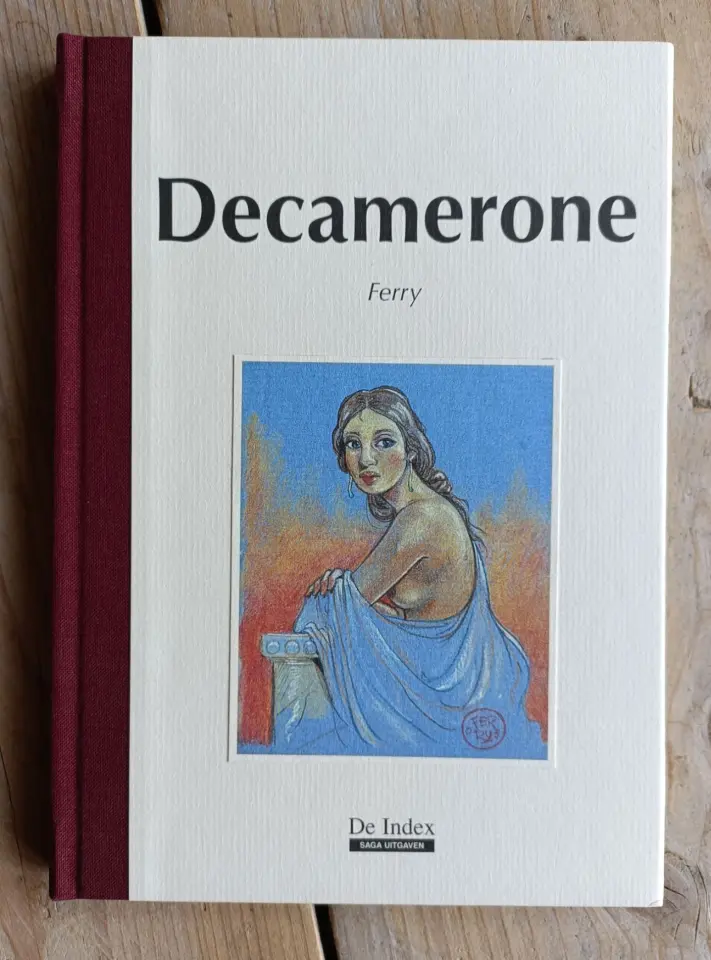 luxe uitgave van 'Decamerone' uit de Index reeks. Het boekje heeft 17 erotische illustraties en is uitgegeven op schetspapier met een linnen band.
